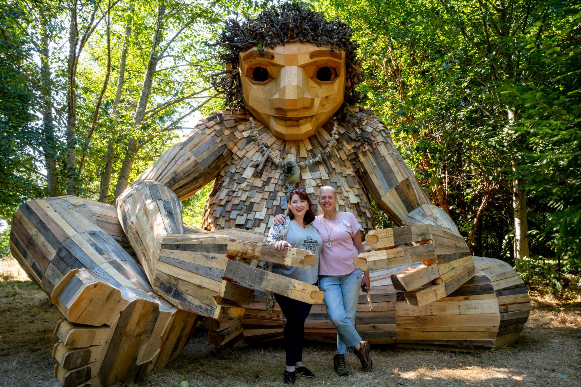 We are thrilled to introduce you to the captivating Pia the Peacekeeper, the latest art installation that embodies the essence of community and imagination. Pia the Peacemaker, created by Copenhagen-based artist Thomas Dambo, is an 18-foot-tall troll made from recycled wood residing in Sakai Park. Dambo encapsulates artistry within his creation, harmonizing his vision with woodcraft and a hint of enchantment. Crafted through the unwavering efforts of individuals, businesses, and organizations, Pia stands as a testament to the remarkable ability of art to engage and uplift our Bainbridge Island community.